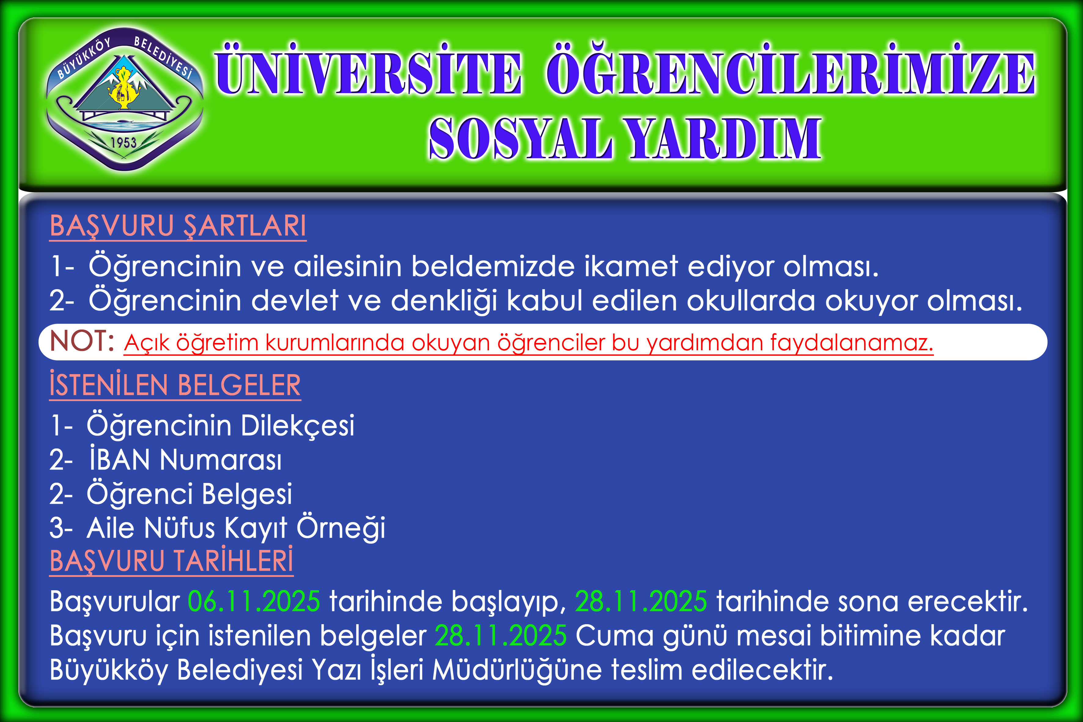 ÜNİVERSİTEDE OKUYAN ÖĞRENCİLERİMİZE SOSYAL YARDIM